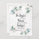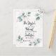Inspirational quote scripture postcard depicts a beautiful watercolor floral design with blue and pink leaves and features Bible Verse Romans 12:12, "Be joyful in hope, patient in affliction, faithful in prayer." _