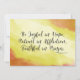 Flat greeting card with inspirational quote scripture depicts a brown and light green abstract background. It features an encouraging Christian Bible Verse from Romans 12:12, "Be joyful in hope, patient in affliction, faithful in prayer." The greeting, prayer can be personalised or deleted for a hand written message.