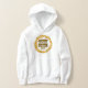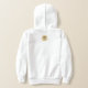 This girl's hoodie showcases a design that features a balloon extra bold print font with golden coloured letters black outline displaying the "Romans 12:15" KJV bible scripture verse inside of a crown of thorns in this faith based theme. This verse is from the Book Of Romans 12th chapter showing the 15th verse with this King James bible scripture verse. This hoodie is made from a 10 oz cotton-poly blend 100% cotton face set-in sleeves and double-needle stitched armholes & bottom band for extra durability has a matching image on the back.