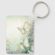 Keychain with inspirational quote scripture depicts a simple art design with butterflies and flowers on a green background. It features Bible Verse Romans 12:2, "Do not be conformed to this world, but be transformed by the renewing of your mind, that you may prove what is that good and acceptable and perfect will of God."