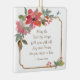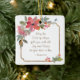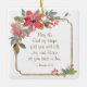 Inspirational scripture personalised Christmas ornament depicts red and pink watercolor Poinsettias, berries and greenery on an elegant gold frame. It features a portion of an encouraging Bible Verse Romans 15:13, "May the God of Hope fill you with all Joy and Peace as you trust in him." Customise the back with a name, date and blessing or the details of your choice.-