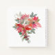 Inspirational scripture Christmas notebook, journal depicts red and pink watercolor Poinsettias, berries and greenery on an elegant gold frame. It features a portion of an encouraging Bible Verse Romans 15:13, "May the God of Hope fill you with all Joy and Peace as you trust in him."