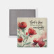 Christian inspirational quote scripture magnet depicts a beautiful floral watercolor garden design with red and pink flowers and greenery. It features an encouraging Bible Verse Romans 5:5, "God's love has been poured into our hearts."