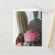 A bright pink flowering cactus pops out of this postcard, featuring bible verse Romans 8:37.