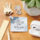 Keychain with inspirational quote scripture depicts a simple abstract background in shades of blue. It features a portion of an encouraging Bible Verse taken from Romans 8:39, "Nothing can separate us from God's Love."