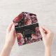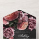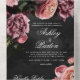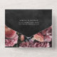 Romantic and moody, this formal wedding invitation is perfect for a sophisticated modern wedding. The moody floral design features a natural bouquet of blush pink and dusty lavender flowers with dark green leaves in a luxurious arrangement on a dark black watercolor background.