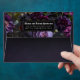 Romantic and moody, this envelope is perfect to add your signature look to your wedding invitation suite. The moody floral design featured on the back flap has a natural bouquet of purple and lavender flowers on a dark purple and black lace background.