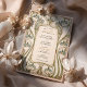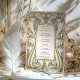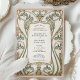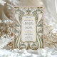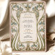 This stunning wedding invitation embodies the elegance of the Art Nouveau movement, featuring graceful floral motifs, flowing curves, and gilded botanical details. The front is adorned with delicate bluebell lilies, intertwined with swirling golden vines, framing the wedding details in a sophisticated serif and script typography. The soft cream, sage green, and muted teal hues create a vintage yet refined aesthetic, ideal for couples seeking a romantic and timeless wedding theme.