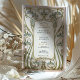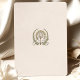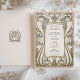 The back of the invitation showcases a custom monogram emblem, featuring a stylised tree with laurel leaves, evoking the charm of historic European craftsmanship. Inspired by the works of Alphonse Mucha and the Belle Époque era, this elegant invitation is perfect for formal, garden, or Art Nouveau-themed weddings.