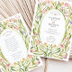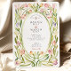 Invite your guests to a celebration of timeless romance with this exquisite Art Nouveau-inspired wedding invitation. This beautiful design features a graceful, hand-painted watercolor border of stylised magnolia-like flowers, blooming in a soft, dreamy palette of blush pink, peach, creamy white, and hints of lavender. The elegant, intertwining stems and sage green leaves artfully form an oval frame around your wedding details, which are enclosed by a charming, hand-painted dashed border in a soft gold hue. Perfect for a romantic garden, spring, or artistic wedding celebration, this invitation sets a tone of delicate and sophisticated charm.