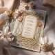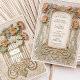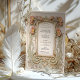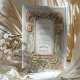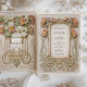 This stunning Art Nouveau wedding invitation features an intricate floral and gold frame design, embodying the elegance of the Belle Époque era. Soft pastel flowers in blush pink, ivory, and sage green bloom around an ornate gold filigree border, creating a romantic and timeless aesthetic. The delicate balance of flowing curves, botanical elements, and vintage typography makes this invitation perfect for a classic, garden, or vintage-themed wedding. Personalise it with your wedding details for an unforgettable first impression of your special day.