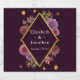 Romantic autumn dahlia wedding: Fall leaves accompany a floral frame in various shades of purple