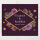 Romantic autumn dahlia wedding: Fall leaves accompany a floral frame in various shades of purple
