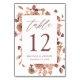 Elegant autumn wedding table number cards featuring the table number, your names, and wedding date framed by watercolor flowers and foliage in shades of blush, burgundy, terracotta, marsala & brown. The warm and moody colour palette makes these table numbers perfect for your late summer or fall wedding.
