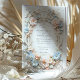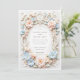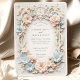 This elegant wedding invitation combines baroque artistry with soft floral details, creating a luxurious and timeless design. The ornate filigree frame in cream and ivory tones is adorned with pastel florals, including blush pink and light blue hydrangeas, set against a refined cream backdrop. The front design highlights a harmonious blend of vintage charm and romantic sophistication, while the back features a minimalist ornamental monogram surrounded by intricate, symmetrical motifs. Perfect for couples planning a classic, formal, or garden-inspired wedding, this design offers an exquisite and cohesive addition to your stationery suite.