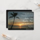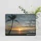 This postcard features a photo of a romantic beach sunset with a palm tree silhouette. Personalise this invitation with your wedding information. The back has plenty of room if you need to provide more details. This postcard works well for a beach theme, destination wedding or sunset weddings.