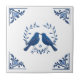 Romantic Bird Pair Delft Blue White Floral Corner Tile