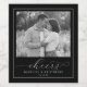 This wedding wine label features a black and white photograph of two individuals sharing an intimate moment in a softly blurred outdoor setting, creating a timeless and romantic feel. The design includes elegant script typography for the word "cheers" and understated serif fonts for customizable names and dates, adding a personal touch to your celebration. The monochromatic color palette enhances the classic aesthetic, making it perfect for commemorating special occasions like weddings or anniversaries with a nostalgic yet contemporary vibe.