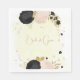 Romantic black & pink flowers with gold leaves botanical wedding paper napkin.