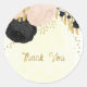 Romantic black & pink flowers with gold leaves botanical wedding thank you sticker.