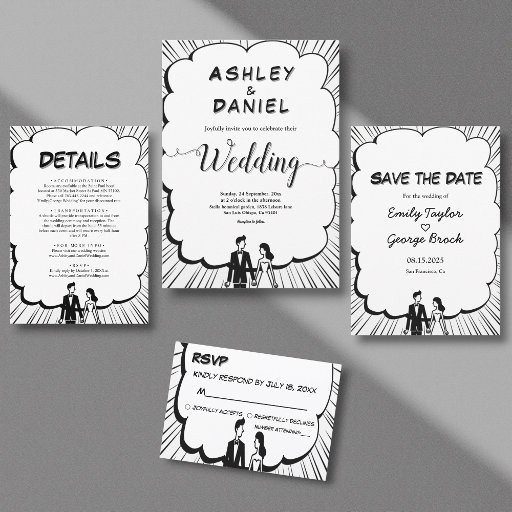 Romantic Black & White Comic Book Elegant Wedding Invitation