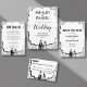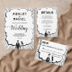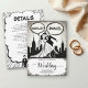 This elegant black-and-white comic book-style wedding invitation is perfect for a modern wedding. The simple design features elegant black calligraphy and a bride and groom illustration on a comic book-themed background. The invitation card includes the wedding details on the back instead of paying for a separate enclosure card.
