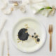 Romantic black & white flowers with gold leaves botanical wedding paper plate.