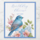 Romantic summer blue flowers and blue bird birthday wine label for the summer and spring birthday party and chic celebrations.