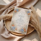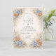 This romantic wedding design features soft blue and peach florals arranged in a delicate garden composition. Inspired by wildflowers and classic botanical illustrations, the artwork blends muted neutrals with airy florals for a timeless, refined look. The elegant layout and gentle color palette make it ideal for couples planning a nature-inspired wedding with a graceful, understated aesthetic that feels both modern and enduring.