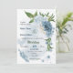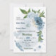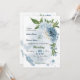 Beautiful blue and white flowers with some green leaves arranged in a pretty way to form a gorgeous wedding invitation