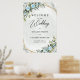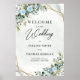 Romantic Blue flowers and eucalyptus gold wedding welcome poster 24x36