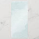 Unique wedding menu card featuring romantic blue flowers and green leaves.