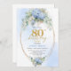 Romantic Blue Hydrangea Gold Floral 80th Birthday Invitation