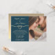Elegant, sophisticated gold foil rope heart in combination with navy blue background and custom photo of the couple.