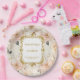 These customisable wedding plates can be personalised with your names, initials, or wedding date, making them a practical yet stylish detail that complements your décor. The boho floral design with blush roses and shimmering gold accents pairs beautifully with rustic, modern, or romantic wedding themes.