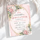 Romantic Blush Pink Floral Greenery Quinceañera Invitation