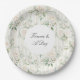 Romantic Blush White Roses Floral Stripes Wedding Paper Plate