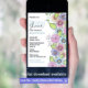 This Bridal Shower invitation is a harmonious blend of elegance and botanical beauty. The right and bottom borders are adorned with intricately detailed illustrations of flowers in full bloom, showcasing a vibrant palette of purples, pinks, and greens. The blossoms, rendered with meticulous detail, exude a sense of freshness and natural grace. The text is gracefully positioned amidst the floral display and perfectly captures the joy and anticipation of a celebration in honour of the bride-to-be. This Bridal Shower invitation is a delightful blend of elegance, charm, and practicality, making it a perfect choice for such a special occasion.