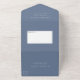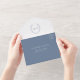 Our All-In-One Wedding Invitations encapsulate your love story in one elegant package. Featuring a romantic botanical crest in dreamy blues, these invitations unfold to reveal all the details of your enchanting, traditional wedding.