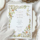 This romantic wedding invitation is adorned with graceful watercolor birds and pastel florals, creating a whimsical and enchanting atmosphere. Inspired by vintage botanical illustrations, the design features ornate golden flourishes that wrap around delicate vines, blossoms, and softly coloured songbirds in mid-flight. The combination evokes a feeling of nature’s harmony and the joy of new beginnings.