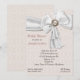 Beautiful pale pink and white coloured bridal shower invitation, with a white lace like design, in a pale pink background. Graphics of a white ribbon and bow, at the top, is decorated with a pretty big pearl jewel. Personalise all the text to suit your special event. Lovely keepsake invitation the bride to be will love.