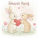 A sweet watercolor card featuring two charming bunnies holding a heart. A wonderful gift for your loved one on Valentine’s Day or any special occasion.