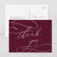 Romantic Burgundy Calligraphy Thank You Postcard