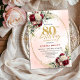 Romantic Burgundy Floral Gold Frame 80th Birthday Invitation