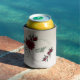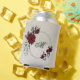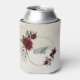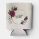Beautiful can cooler featuring romantic burgundy flowers and green leaves.