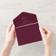 This romantic burgundy monogram QR code wedding all in one invitation is perfect for a simple wedding. The modern classic design features fancy swirls and whimsical flourishes with gorgeous elegant hand lettered faux champagne gold foil typography. Hand write your guest addresses on the back of the folded invitation, or purchase coordinating guest address label stickers (sold separately).