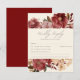 This Elegant Burgundy and red floral wedding rsvp card features your wedding details in modern lettering, set in a oval frame of dusty beige white with watercolor flowers and botanical foliage in desert inspired earth tone shades with burgundy,red,maroon and ivory colour with warm copper colour text.vintage frame touch make this vintage floral invitation unique.A perfect crimson red vintage wedding rsvp card for summer, spring fall and winter weddings.