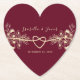 Set the stage for romance with our vintage-inspired, boho-chic heart-shaped paper coasters, adorned in rich red burgundy. Personalised with the names of the bride and groom in modern calligraphy script and embellished with chic gilded floral lace, these coasters add an elegant touch to your special day.