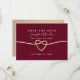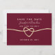 Announce the beginning of your romantic journey with our chic burgundy save the date invitation. Featuring elegant simplicity, adorned with delicate calligraphy script and a shimmering gold rope heart. It's the perfect way to set the tone for your modern and romantic celebration of love.