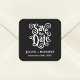 Romantic Calligraphy Black Wedding Save the Date Square Sticker